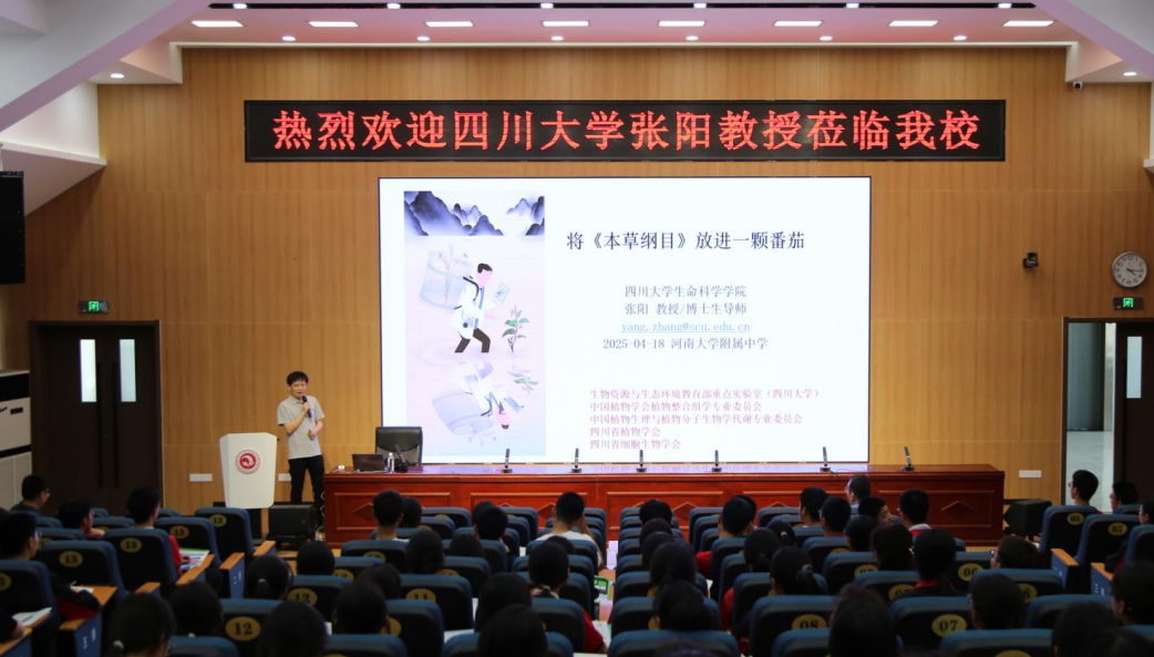 张阳老师前往河南大学附属中学开展科普讲座,200多名高一学子参与了讲座。他结合自身科研经历生动讲述植物研究的魅力,展示实验室的创新成果,并系统介绍太阳成集团122ccvip的历史沿革、团队力量、办学特色和科研方向,最后鼓励同学们立足自身兴趣与优势,理性选择专业和院校,找到属于自己的发展方向。