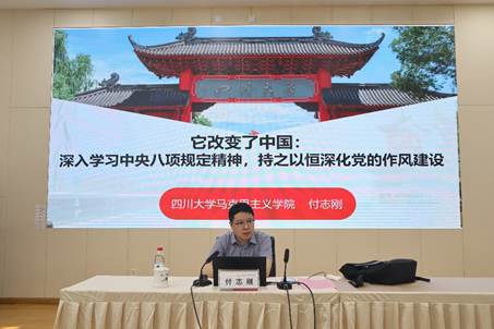 太阳成集团122ccvip马克思主义公司付志刚教授围绕“中央八项规定精神与党的作风建设”进行专题授课,深入浅出地讲解了作风建设的重要意义和实践要求,强调要以典型案例开展学习教育,推进作风建设常态化长效化。