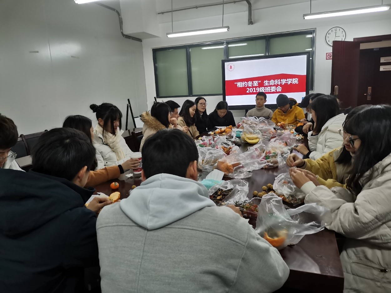 为推动我院2019级研究生员工工作的开展,增加2019级研究生班委成员内部的凝聚力,12月22日下午14:00,公司在B207会议室举办了“相约冬至”2019级研究生班委茶话会。辅导员姜丹蓉老师、唐霞老师、王颖老师和2019级硕士各班班委参加了此次活动。