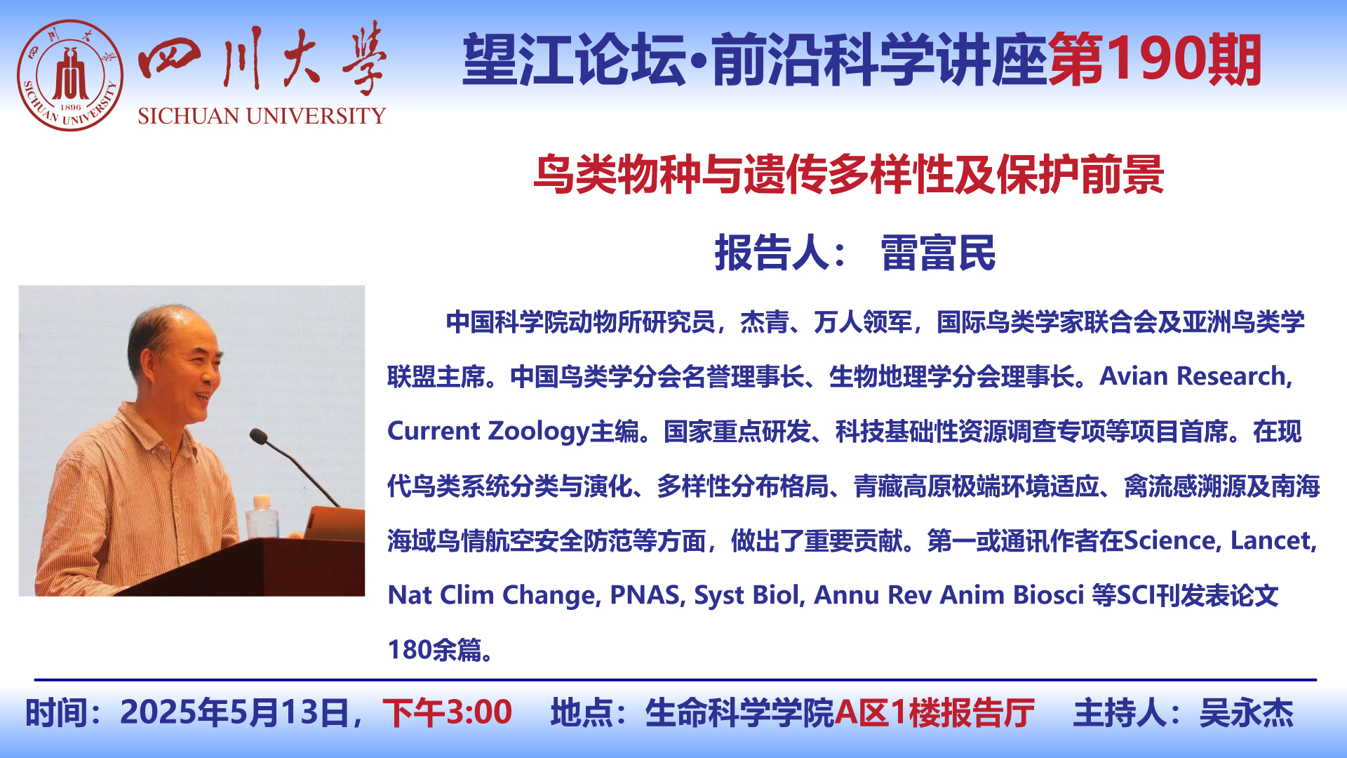 望江论坛-前沿科学讲座(第190期):雷富民研究员5月13日学术讲座