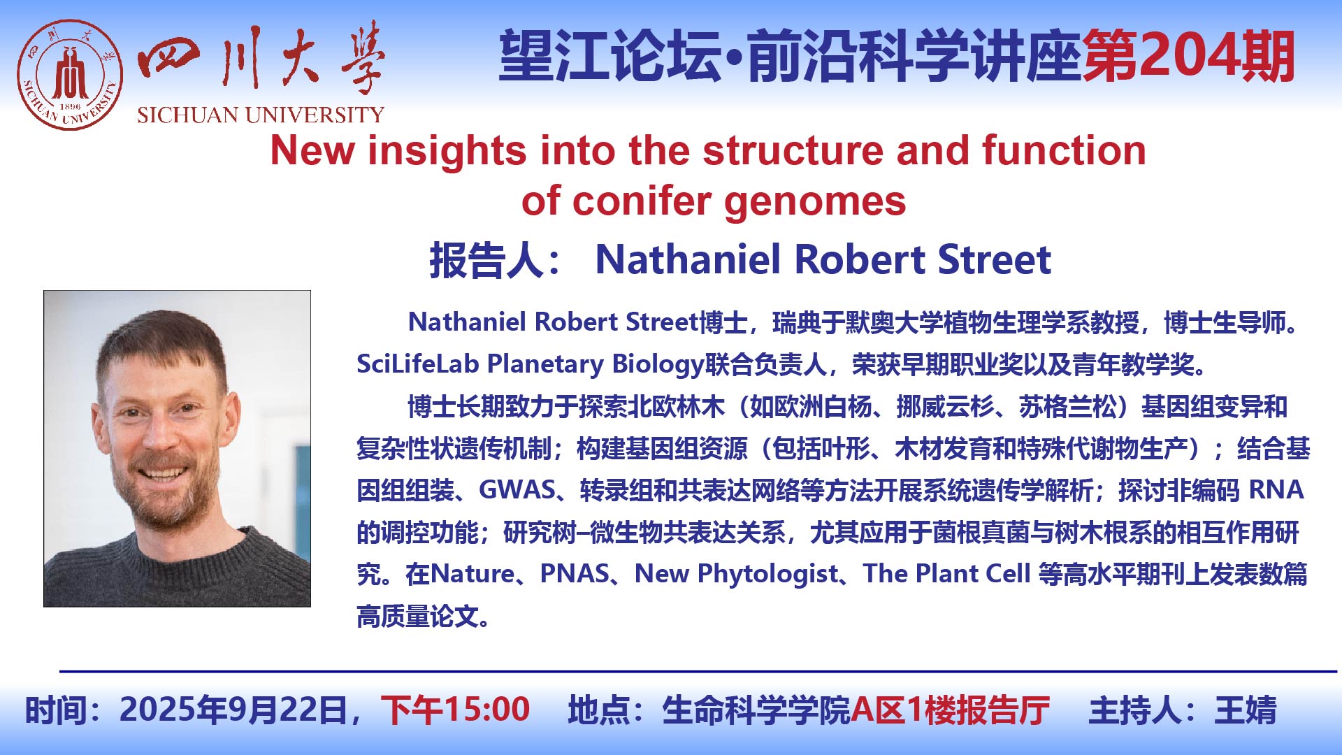 望江论坛-前沿科学讲座(第204期):Nathaniel Robert Street教授9月22日学术讲座